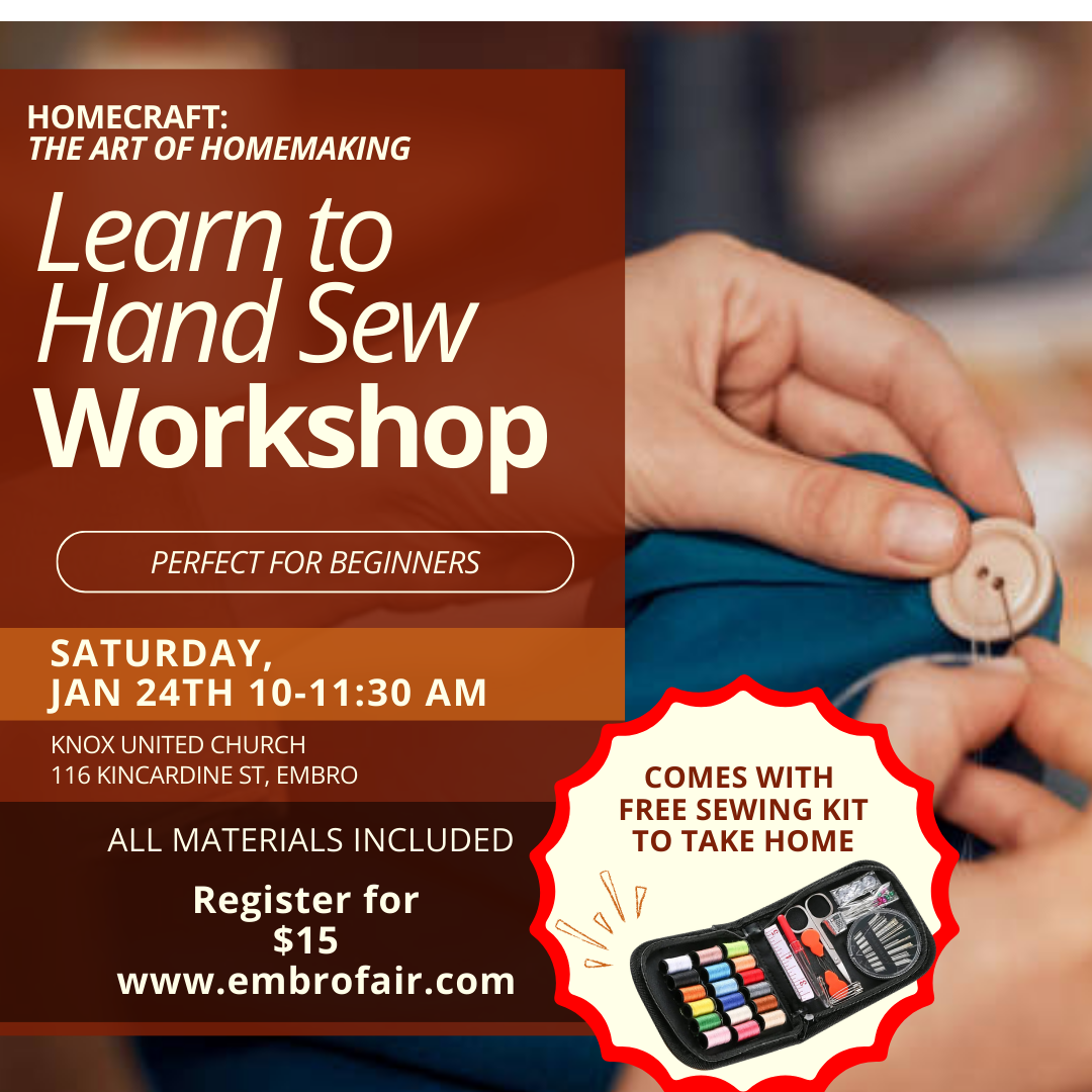 Hint: Workshop topics connects to a homecraft competition class at the Embro Fair where you can enter your creations